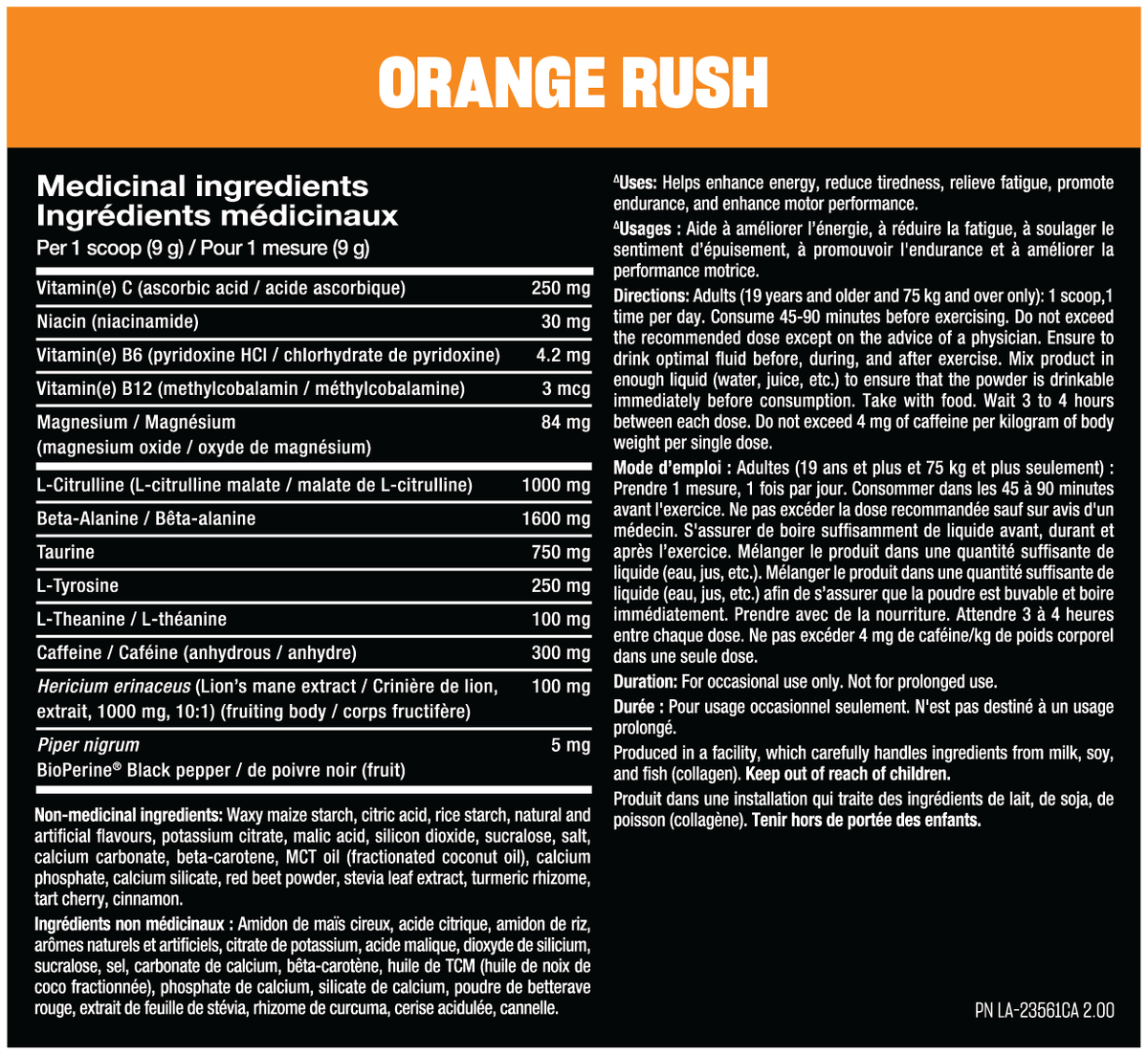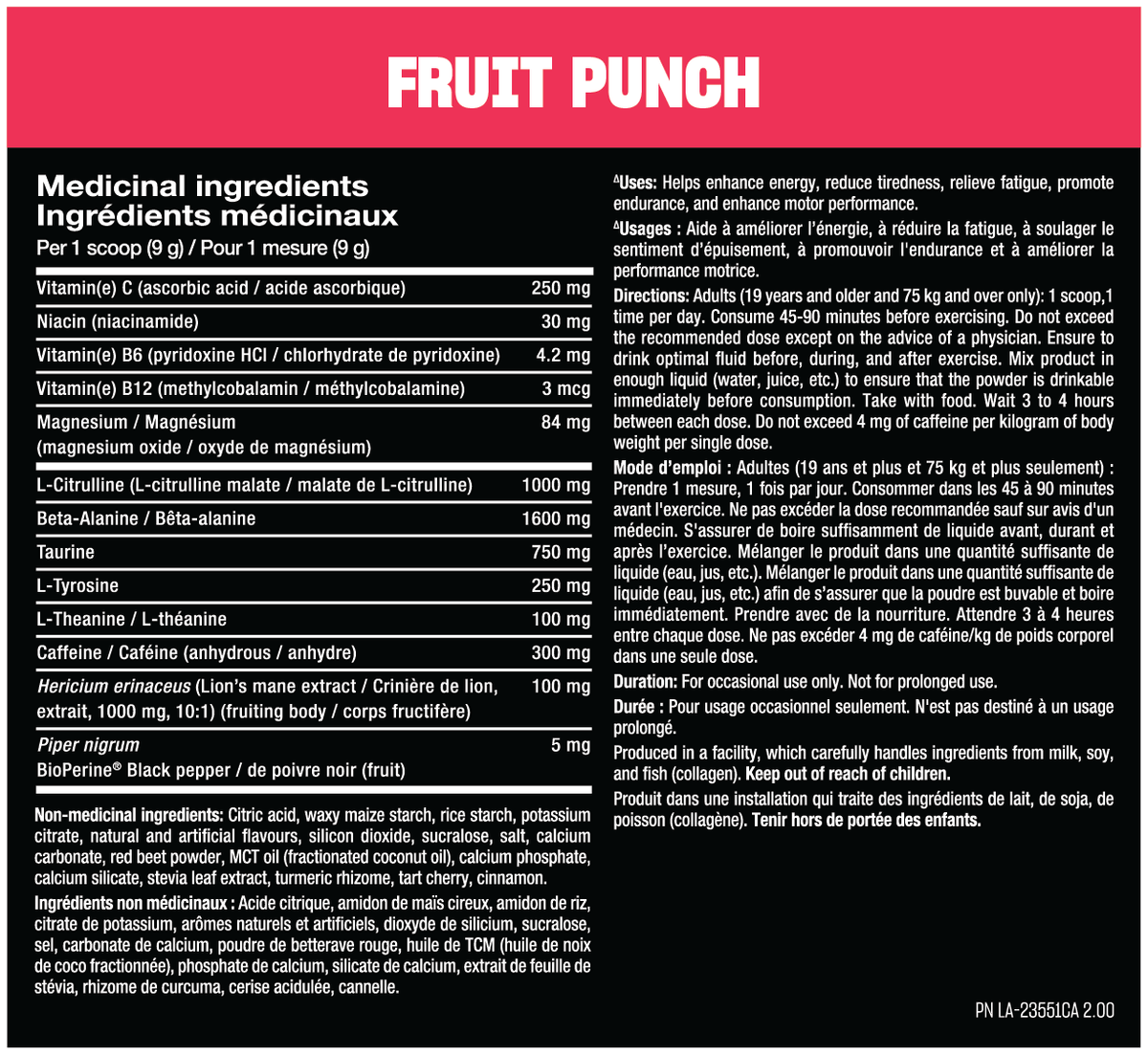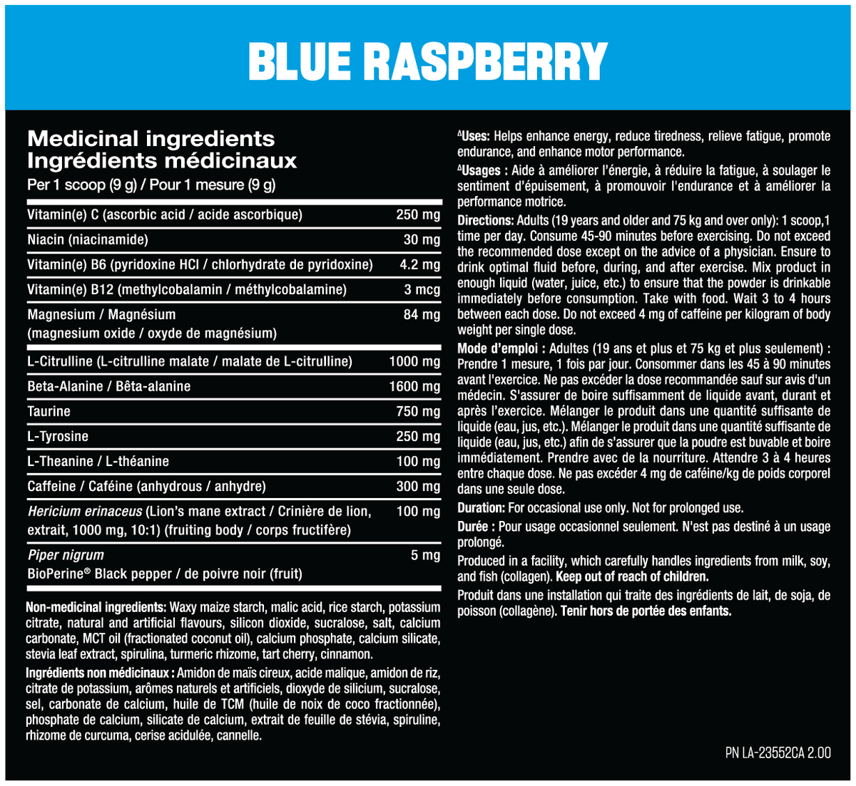 Directions for healthy adults only: mix ½ to 1 serving with 8–16 fl oz (250–500 ml) of water 15-45 minutes before workouts. (use 1/2 serving or less first to assess tolerance). Use only as directed. Follow all the warnings on the label before use. Do not consume within 4 hours before bedtime. Never exceed two servings per 24 hours.