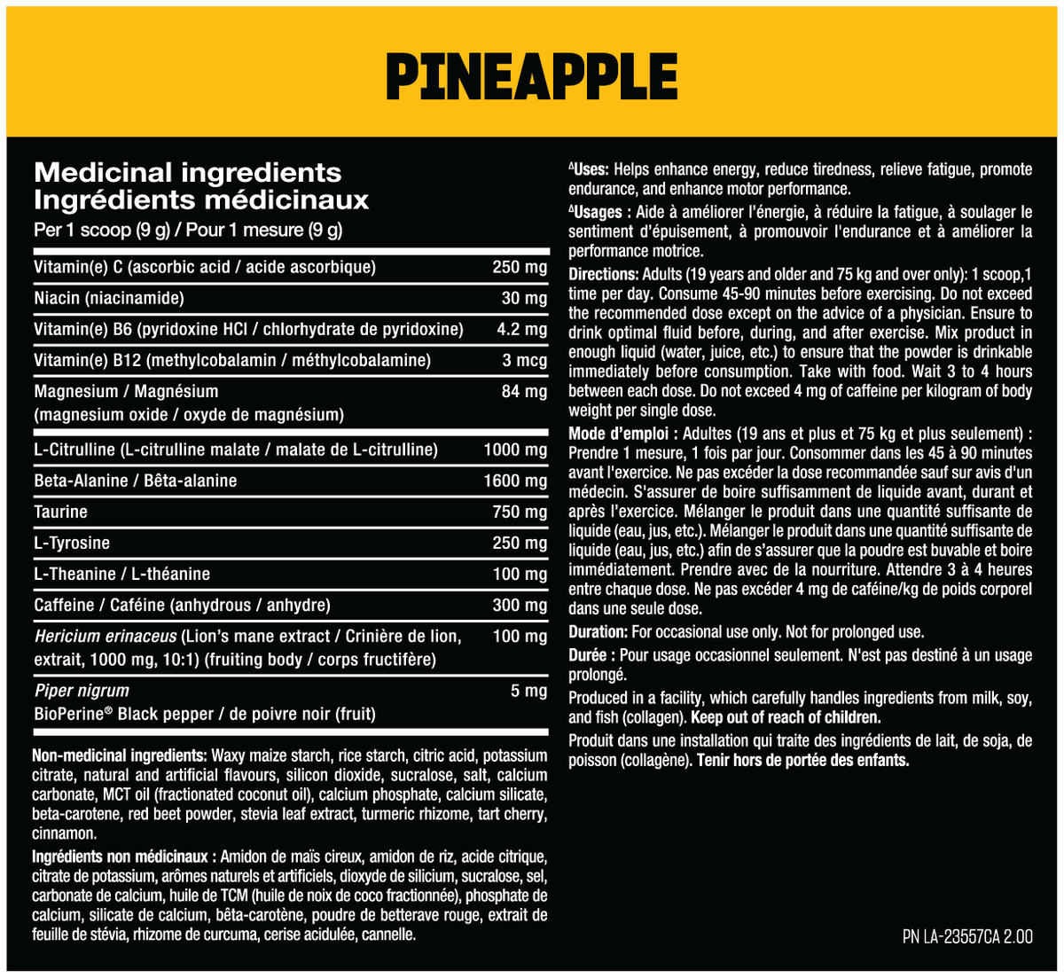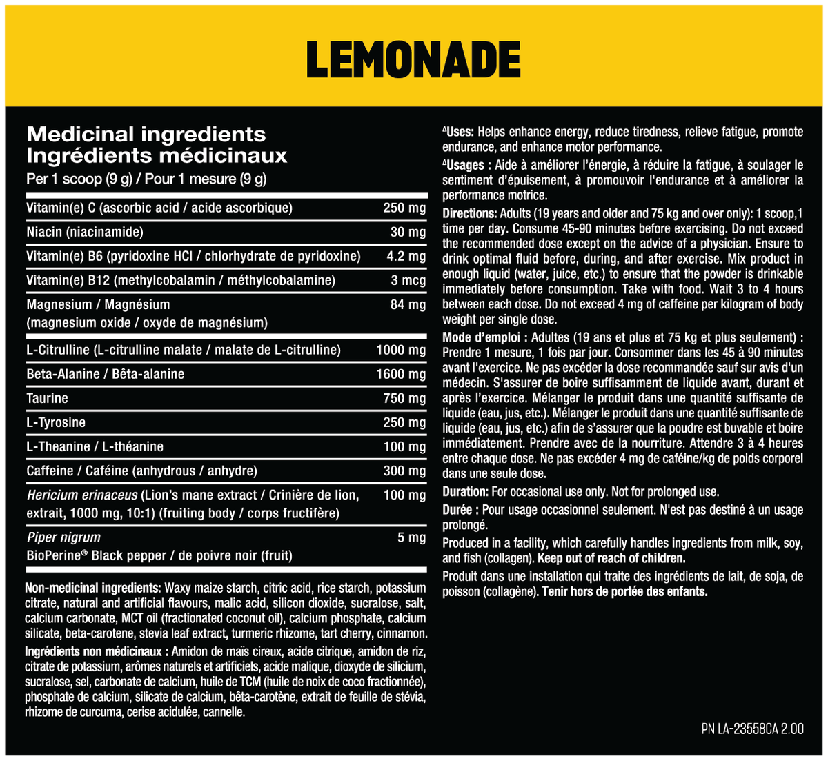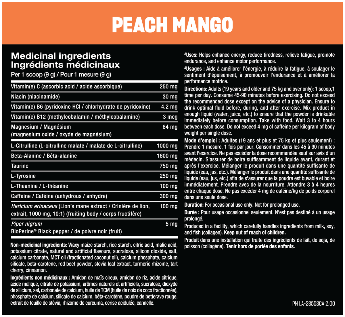 Directions for healthy adults only: mix ½ to 1 serving with 8–16 fl oz (250–500 ml) of water 15-45 minutes before workouts. (use 1/2 serving or less first to assess tolerance). Use only as directed. Follow all the warnings on the label before use. Do not consume within 4 hours before bedtime. Never exceed two servings per 24 hours.
